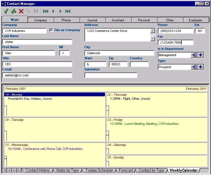 Core Features Shared & Distributed Network Databases The Workgroup version of Commence allows users to share information with other Commence users and gain the full benefits of network-based information sharing. Commence automatically synchronizes any additions or updates to the database with other authorized users on the network. When one user/client makes a change, all other users will see the change on their systems as well. Users can disconnect from the network and still have their own local copy of the shared database to take with them. When they return and reconnect to the network, all their changes will be synchronized with the other users, and vice-versa. Anyone who needs business information, both in the office and on the road, gets the best of both worlds with Commence. Flexible Database Architecture Commence includes a flexible database offering robust capabilities to meet the needs of growing businesses. The database includes many field types including text, number, email addresses, web addresses, telephone, image, and document fields. Commence’s unique 'connection' field type is used to quickly make relationships between tables, for example relating contacts and the companies they work for. Connection fields allow related data to be quickly accessed and instant access to attached records. Calendar & Scheduling Individual users can keep total control of their schedules and calendar events through powerful calendar capabilities. Users graphically view their calendar by the day, week, month or year, which includes text and colour-coded busy bars. Users can drag and drop items to schedule or reschedule appointments as well as enhance their productivity, using features such as sounding an alarm prior to an appointment. Conflicts can also be identified which inform the user of multiple appointments booked at the same time. Viewing & Reporting Data can be viewed and printed in a variety of ways. Users can display selected data and fields in report form, in familiar address book format, graphically as a Gantt Chart, and in day/week/month/year calendar form. Printing in various day planner and organizer formats is supported, as well as envelopes, labels, Rolodex, index cards, and much more. Multi-View The multi-view feature provides a clean efficient way to view your data. Similar to the dashboard of your automobile, this feature allows the end-user to combine multiple windows of information into a single frame. Examples are provided below:
